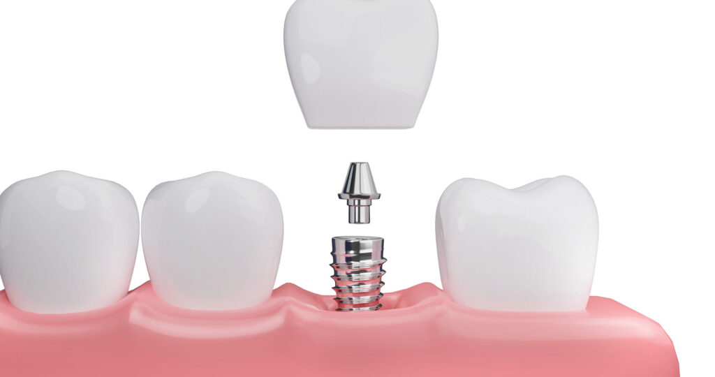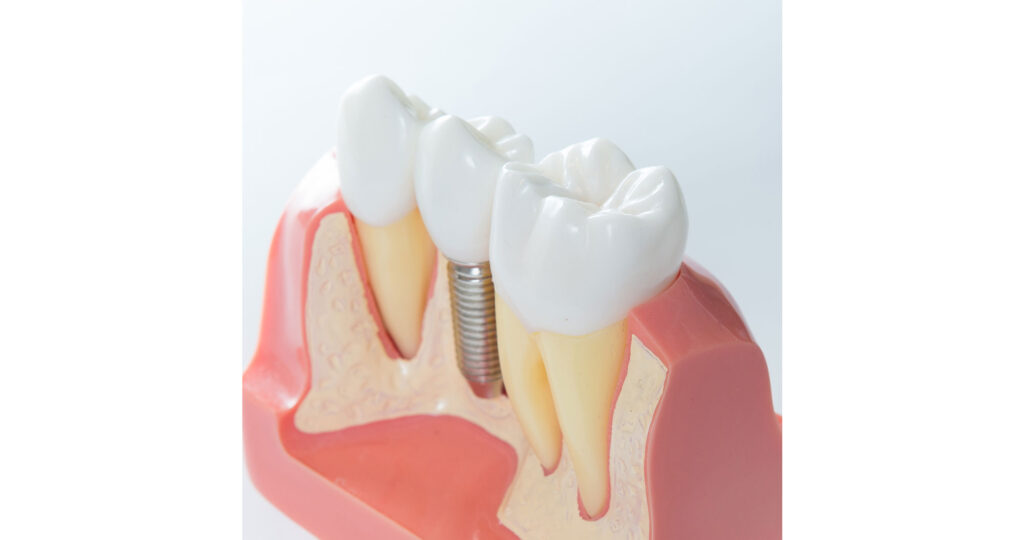歯を失ってしまった場合、人工的に歯根を新たに作り、人工歯を取り付ける治療法がインプラントです。インプラントは、以下の3つの要素で構成されています。